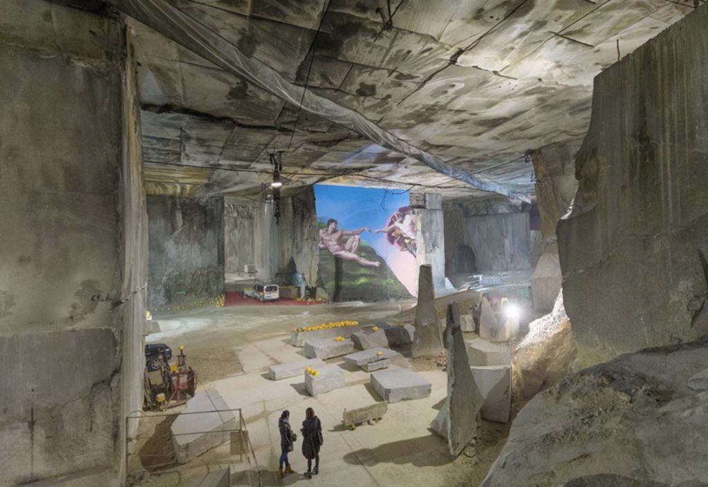 Nel 1983 Dell’Amico Carlo sfruttando i tunnel della “Marmifera” (treno adibito al trasporto dei blocchi) è stato il pioniere della tecnica di escavazione interna riuscendo a sviluppare nel centro della montagna delle immense stanze calcolate in 24000m. cubi sostenute da imponenti colonne che fanno restare il visitatore senza fiato, in un luogo quasi lunare dove si perde il senso delle proporzioni ed il tempo si ferma.