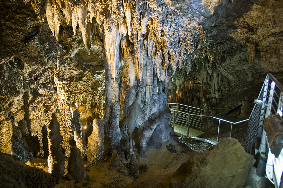 Il percorso turistico si snoda, attraverso una passerella di acciaio, per circa due chilometri, passando per alcuni dei luoghi più suggestivi della grotta, attraversando boschi di stalattiti e saloni alti decine di metri.